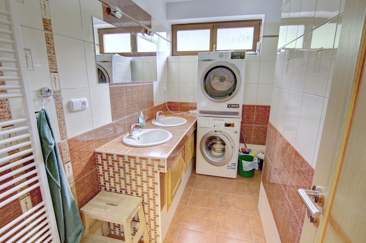 Pro snadnou úschovu sportovního vybavení zde slouží lyžárna - kolárna a venkovní stojany na kola.  V přízemí využijete místnost s pračkou a sušičkou pro ještě větší komfort.